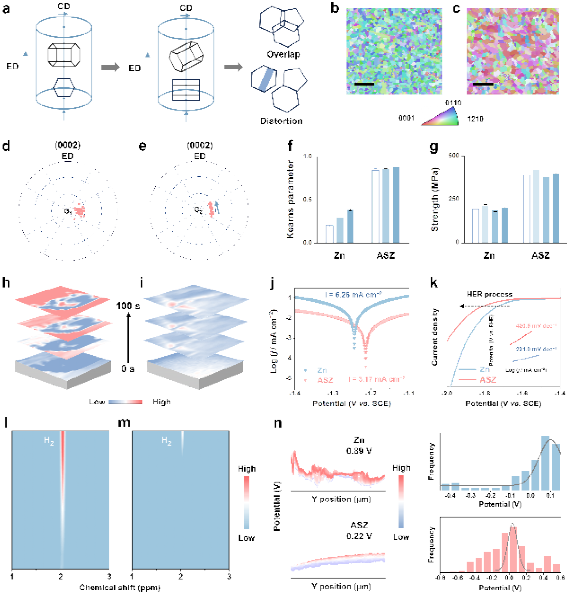 锌离子电池作为下一代储能技术,凭借其高安全性、低成本和环境友好等优势而备受关注。然而,锌金属负极频发的副反应(如副产物、腐蚀和析氢)、迟缓的离子扩散以及剧烈的枝晶生长,严重损害电池的可逆性与循环稳定性。与Zn (1010) 和 (1011)平面相比,Zn (0002)平面具有最低成核能,因此调控锌金属的晶体取向以暴露更多的Zn (0002)平面是实现锌负极长效循环的有效策略,但精确的Zn (0002)平面取向晶体学调控以显著降低锌负极晶间持续应力累积面临挑战。