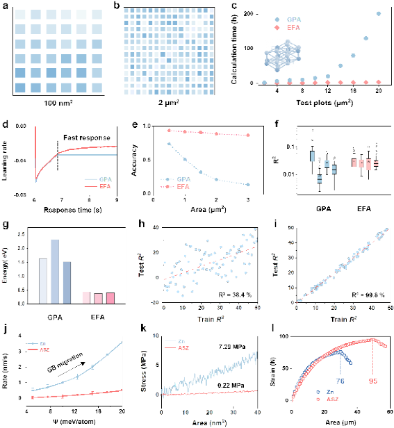 研究团队应用欧几里得快速注意力模型分析微观应变,和传统几何相位分析相比,大幅提升了晶界应力识别速度和精度(99.8 vs.38.4%),实现了大面积应力计算(2 μm2 vs. 100 nm2)。