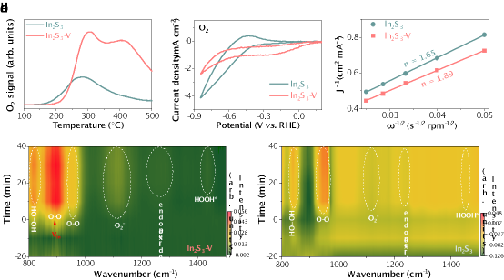 研究团队采用乙二醇作为螯合剂,通过一步水热反应在In2S3表面构建铟离子空位,获得优异的光催化ORR反应性能。表面铟离子空位在材料禁带中引入浅能级缺陷态,极大地促进了光生电荷的分离,增强了表面对光生电荷的捕获。