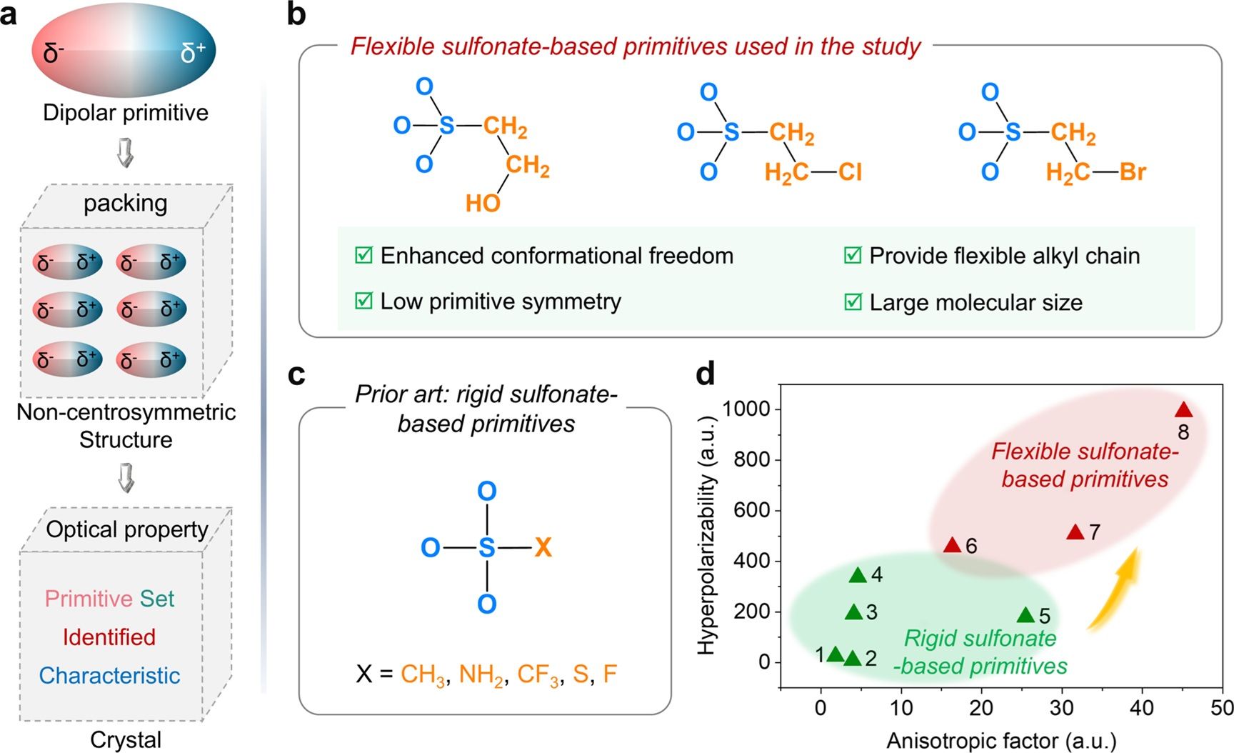 近日,欧洲科学院院士、德国国家工程院院士、永利官网张弛教授研究团队,联合中国科学院北京理化技术研究所、澳大利亚国立大学等单位,在深紫外透明极性有机磺酸盐非线性光学晶体研究中取得重要进展。研究团队提出“连接性调控”策略,通过精准调控阴离子烷基链或抗衡阳离子,成功合成出系列高性能有机磺酸盐晶体,其中,Li [SO3(CH2)2OH]晶体成功实现了深紫外透明度与非线性光学性能的协同优化。相关成果“Unlocking Strong Second-Harmonic Generation in Deep-UV-Transparent Polar Organic Sulfonates through Connectivity Regulation” (通过连接性调控在深紫外透明极性有机磺酸盐中实现强二次谐波产生)日前以全文(Research Article)的形式发表于国际化学、材料权威学术期刊《德国应用化学》(Angewandte Chemie International Edition, 2025, e21786),并被编辑委员会遴选推荐为当期的封面文章和热点论文(HOT Paper)。