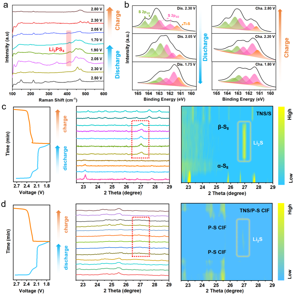 充放电过程中硫物种演化的光谱与衍射分析
