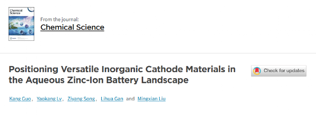 近期,刘明贤教授团队对水系锌电池无机正极材料的研究进展进行了系统总结,综述论文“Positioning Versatile Inorganic Cathode Materials in the Aqueous Zinc-Ion Battery Landscape”在线发表于国际化学领域知名期刊《化学科学》(Chemical Science)。论文首先系统总结了无机正极材料(包括多氧化态的锰氧化物和钒化合物、开放三维框架的普鲁士蓝类似物、层状过渡金属硫化物和高可逆多电子卤素正极材料)的设计策略、储能机制和研究进展。其次,详细分析和讨论了多功能无机正极材料结构、性质和功能与电池关键性能指标(比容量、工作电压、倍率性能、能量/功率密度和循环寿命等)之间的关系;最后,总结和提出了多功能无机正极材料研究的发展、挑战和未来方向。
