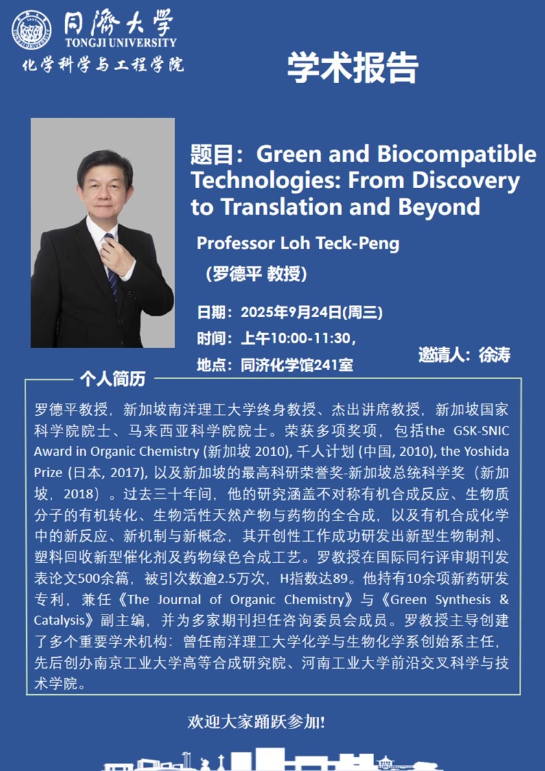 (9月24日)Green and Biocompatible Technologies: From Discovery to Translation and Beyond